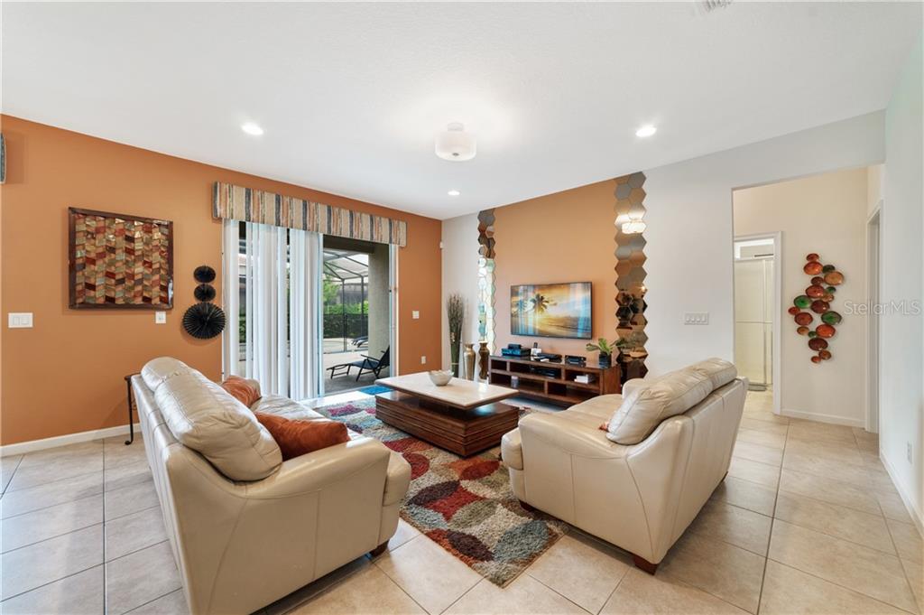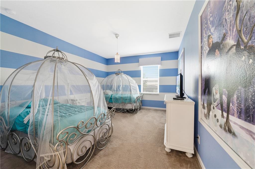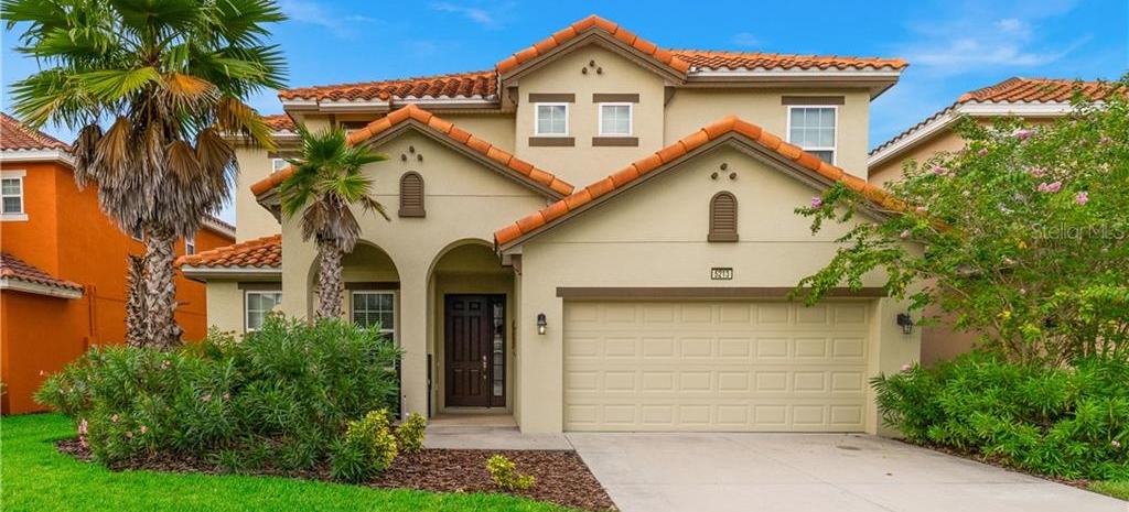 Beautiful fully furnished resort vacation pool home for immediate purchase. 6 large bedrooms and 5 baths. Turnkey ready with the great floor plan Coconut Palm by Park Square Homes. Great loft upstairs with game/media room & theme rooms. Granite kitchen/bathroom countertops, all kitchen appliances, laundry room, screened covered heated pool, covered lanai, and southwest facing pool. Professionally decorated furniture package including leather furniture. Gated entrances. The HOA fully maintains the lawns, common areas and kid-friendly areas. The clubhouse features a resort-style pool & lounge complex and a full exercise room/gym. Large pool with slides, tennis courts and pool cabanas. 15 minutes from Disney. Perfect for income generating short-term rental vacationers seeking what you will have – a secure, family-friendly resort experience. It can be your primary residence or your indulgent vacation home.