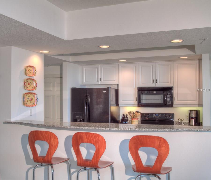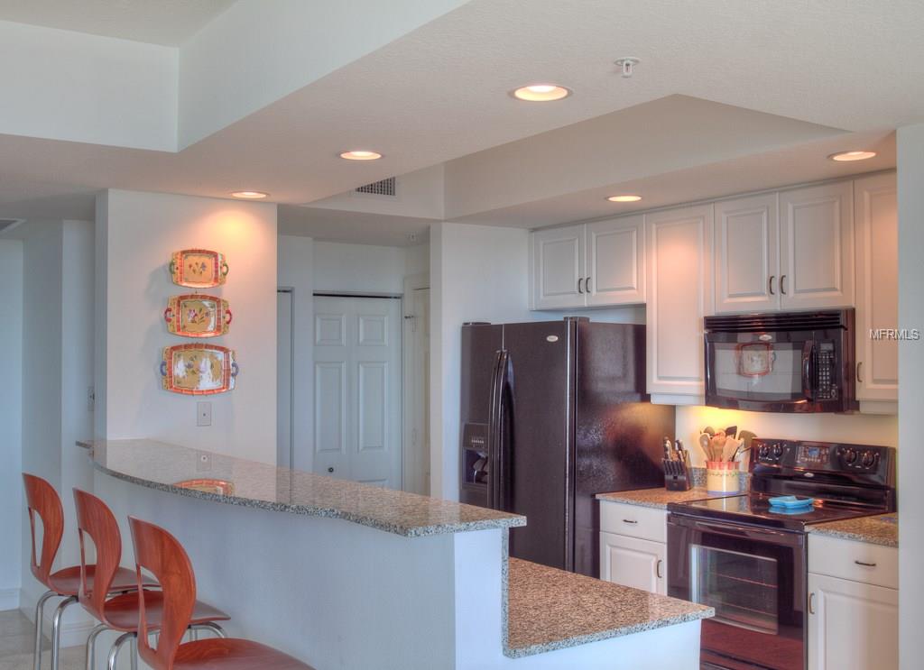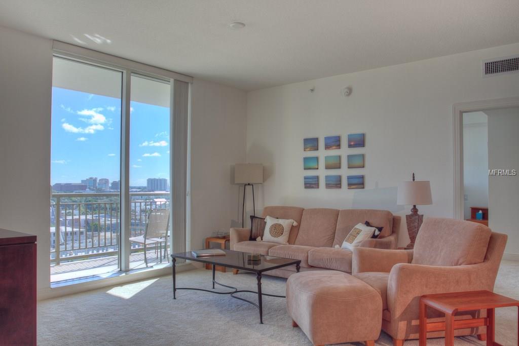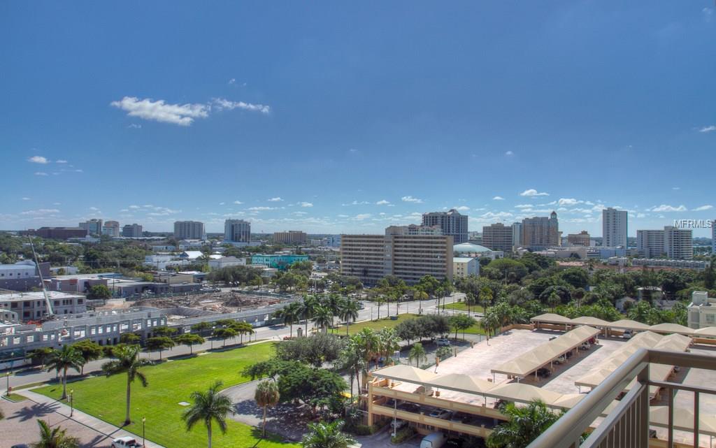 DOWNTOWN ALINARI TURNKEY FURNISHED. RESORT style living at the ALANARI. Newly Furnished and freshly painted and new carpet. Sunny open floor plan with large master suite with a king size bed and 40″ Flat screen TV, large walk in closet and master bathroom with garden tub and walk in shower. Living room/ dining room features a 50″ flat screen TV and a private terrace that overlooks the beautiful Community Pool and expansive cityscape vistas. Perfect kitchen with breakfast hi-bar, granite counter tops. Bedroom two features a queen size bed. Spacious laundry room. One car garage in secure parking garage and plenty of guest parking. Located on the 10th floor in the south tower within close proximity to the elevator. The Alinari provides every amenity you could need: a 24 hour concierge and security, meeting rooms, library, world class fitness center, heated pool with spa and waterfalls, wine room, media room, in-house movie theater, billiards, zen garden and outdoor grilling area. Walk to downtown and enjoy the restaurants, theater, opera, shopping and more. Walk along the water way and enjoy Sarasota’s sunsets. Cross the bridge to St Armands Circle for shopping, restaurants, and the beach. Three month minimum stay. Monthly rate for May through November is $2500.
